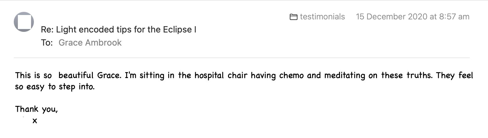 I feel so lucky to have this tool, a little bit of Grace there to help me on my path whenever I need it – all in the comfort of my own home. Brilliant! Thank you so much.”